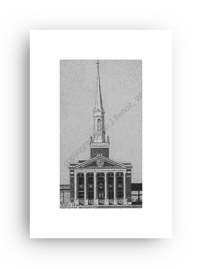 ![]() "Taylortown Bell Tower" 2.5" x 4.5" image on 5" x 7" paper / 1000 Signed and Numbered prints / 8" x 10" double-matted size $10(ink print) / $20(handcolored print) $15(ink print with matting) / $25 (handcolored print with matting) |