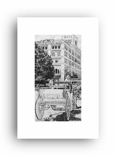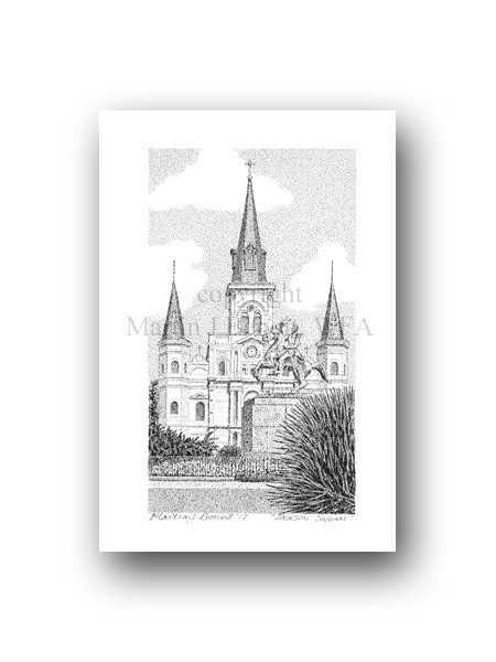 ![]() "Jackson Square" 2.5" x 4.5" image on 5" x 7" paper / 1000 Signed and Numbered prints / 8" x 10" double-matted size $10(ink print) / $20(handcolored print) $15(ink print with matting) / $25 (handcolored print with matting) |