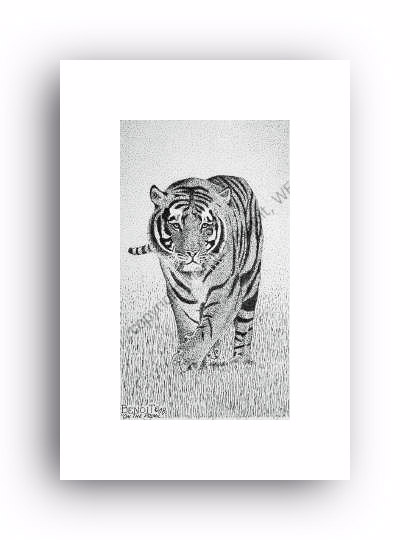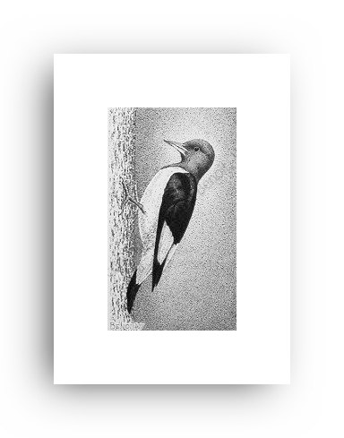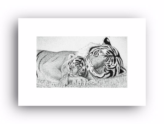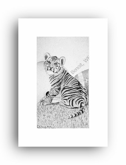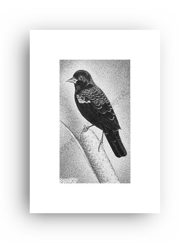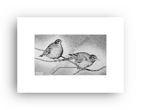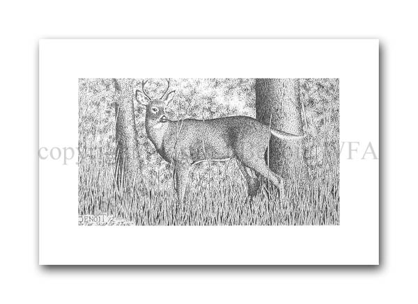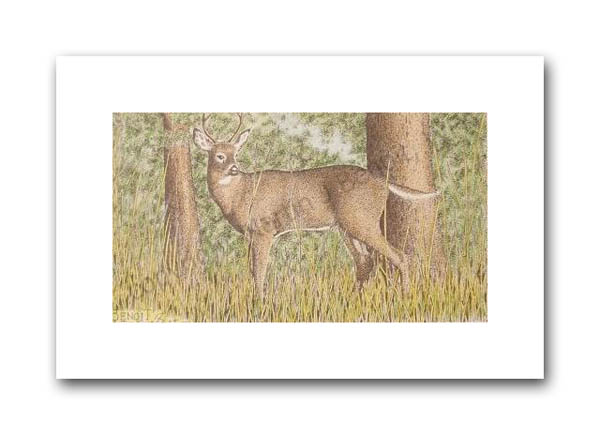 ![]() "At The Snap Of A Twig" 2.5" x 4.5" image on 5" x 7" paper / 1000 Signed and Numbered prints / 8" x 10" double-matted size $10(ink print) / $20(handcolored print) $15(ink print with matting) / $25 (handcolored print with matting) |