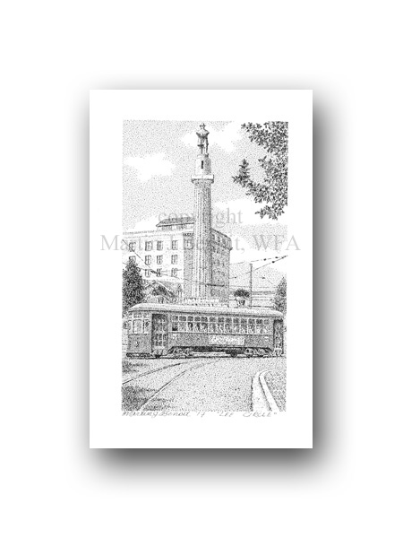 ![]() "Lee Circle" 2.5" x 4.5" image on 5" x 7" paper / 1000 Signed and Numbered prints / 8" x 10" double-matted size $10(ink print) / $20(handcolored print) $15(ink print with matting) / $25 (handcolored print with matting) |