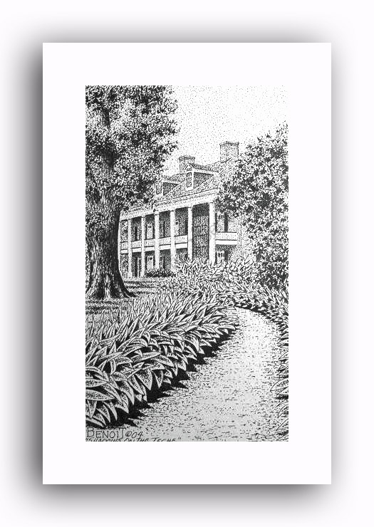 ![]() "Houmas House" 2.5" x 4.5" image on 5" x 7" paper / 1000 Signed and Numbered prints / 8" x 10" double-matted size $10(ink print) / $20(handcolored print) $15(ink print with matting) / $25 (handcolored print with matting) |