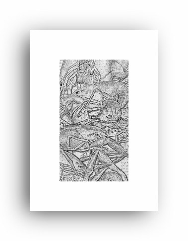 ![]() "Remnants" 2.5" x 4.5" image on 5" x 7" paper / 1000 Signed and Numbered prints / 8" x 10" double-matted size $10(ink print) / $20(handcolored print) $15(ink print with matting) / $25 (handcolored print with matting) |
