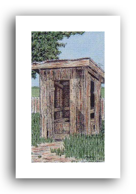 ![]() "The Little House Out Back" 2.5" x 4.5" image on 5" x 7" paper / 1000 Signed and Numbered prints / 8" x 10" double-matted size $10(ink print) / $20(handcolored print) $15(ink print with matting) / $25 (handcolored print with matting) |